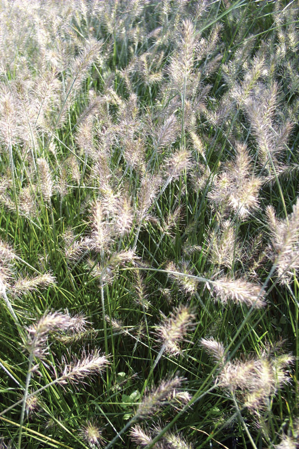 Silvery blooms, green leafed, miniature fountain grass. Blooms August to October. Medium growth rate. 1ft to 1.5ft tall. Full sun. Zone 5.