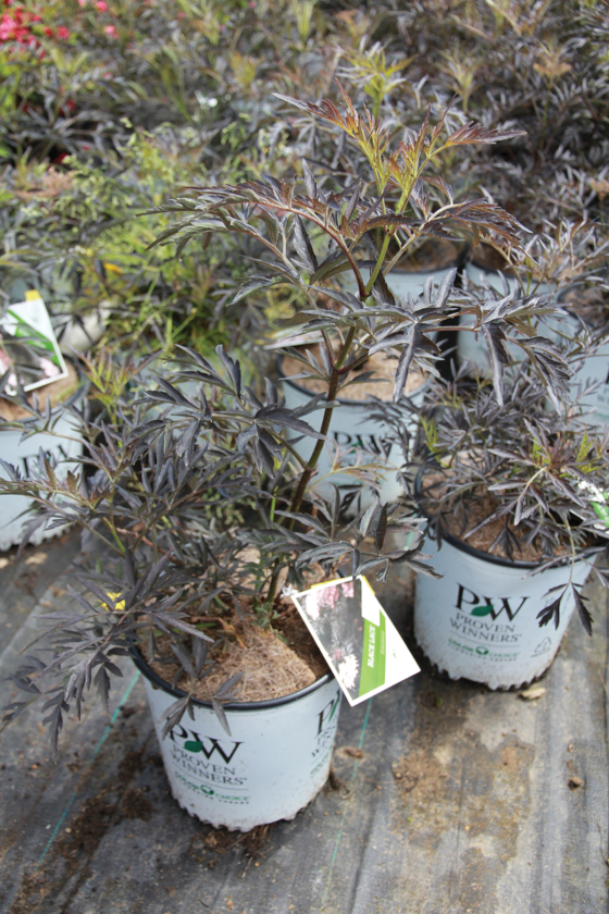 Lacy, intense purple-black foliage provides rich texture and contrast in any landscape. Massive clusters of , lemon scented flowers cover the plant in midsummer. Spectacular!