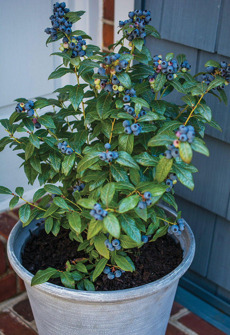 Perpetua will give you two crops of sweet and delicious blueberries! The first fruit will appear in mid-summer, and then the plant will flower and set fruit a second time in the fall. The leaves are dark green and will turn to deep reds and greens in the winter.