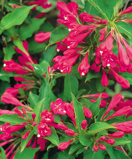 This hybrid retains its colour throughout the season. Rich red flowers begin blooming in late spring and through to summer.
